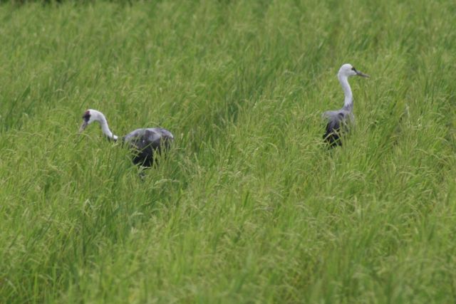 お昼過ぎもなかなか見つけきれず、道際から探していたらなかなか見つからない。ふと視線を目の前にある田んぼに移してみたら、私からそんなに離れていないところに2羽!2番穂をつつきつつ、徐々に少~しずつ離れていきました。「慌てて」ではなかったから、一応危険人物としては捉えられていないのかなあと勝手に想像。なんか、めんどくさいなあ~またあいつがきたなあ位な受け止められ方なのか?