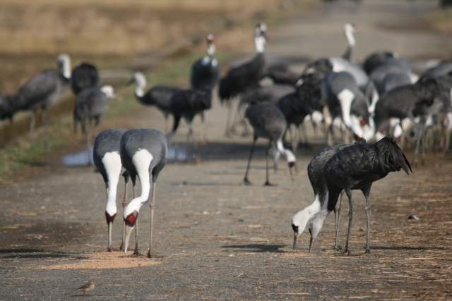 昨日天気が悪かったせいか、羽づくろい熱心なツルが多い。