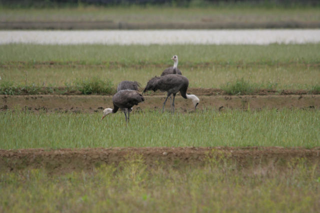 田植えをされる農家の方が多いかなと思っていたけれど、それほどでもなく静かな荒崎でした。軽トラが止まっても、そんなに気にしていないで食べ続けるツルたち。