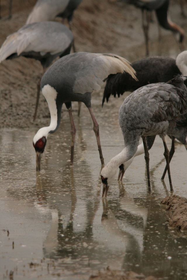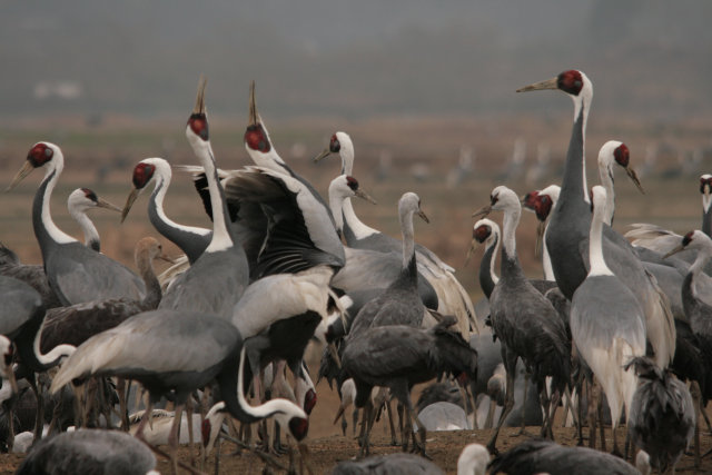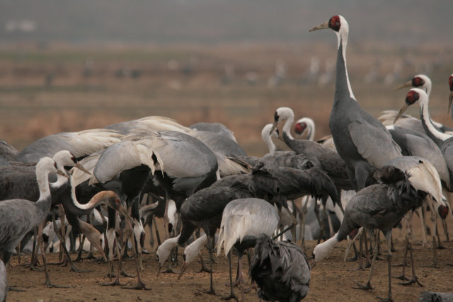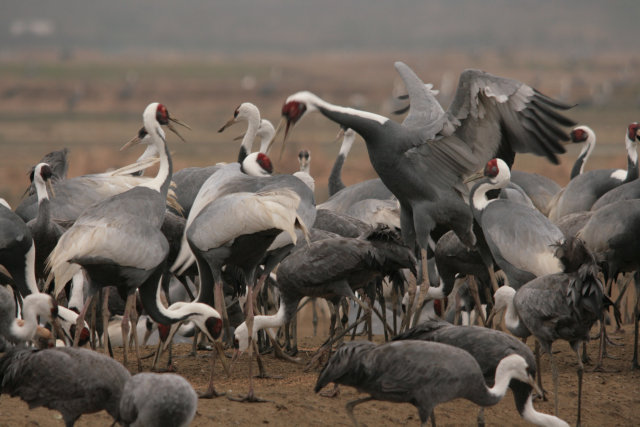 その後、負けた腹いせに?すぐそばにいたナベヅルの背中をつついてました。ストレスたまったんだねえ~