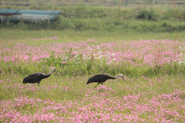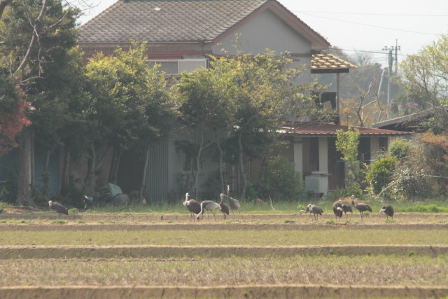 そのうち、ナベヅルの何羽かも移動。