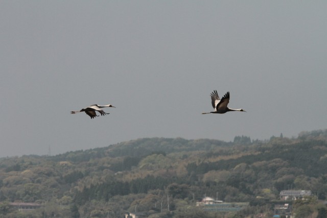 そのあと、マナヅルが2羽飛行の体勢に。
