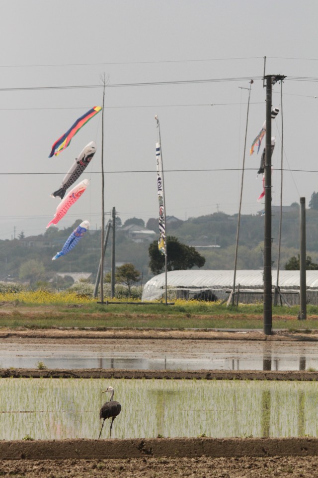 ツルをずっーと朝から見ていらした方に話を伺うと、8時40分10羽(2グループ)が飛び立って1羽が戻り、他のツルはそのまま野口港の方へと飛んで行ったらしい。
