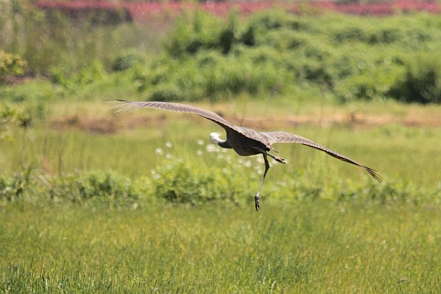 もういないと思って車を走らせていたら、すぐ近くから足が悪いナベヅル1羽が目の前を飛んで移動していきました。
