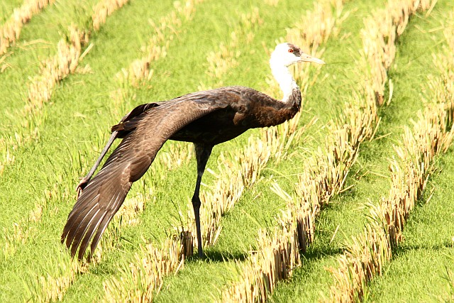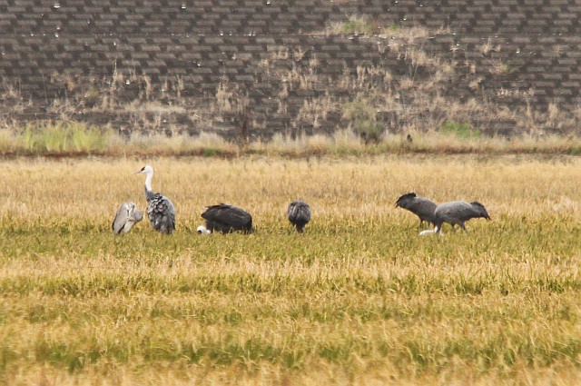 羽が抜けてるナベヅルは、近くの田んぼが稲刈り中で厳戒態勢