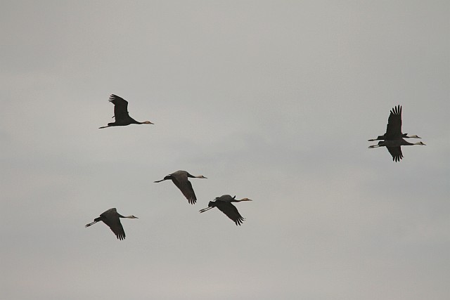 その後、夕方26羽が飛んでいるのが見られているので、今日は夜中ツルが渡ってきているかも?