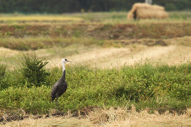 羽が抜けてるナベヅルは、いつもの場所で採餌