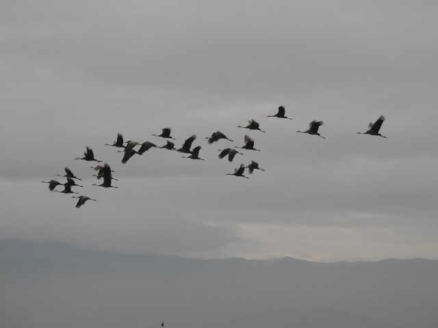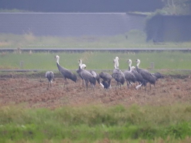こちらでも朝、雨の中旋回する6羽のツルが目撃されました