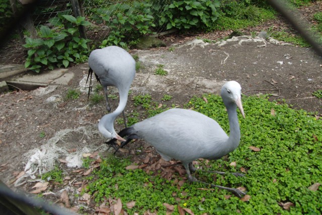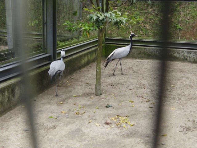 隣のケージにいるクロヅルを牽制してるんだろうけど、ヒナを踏まないかヒヤヒヤしちゃいました。
