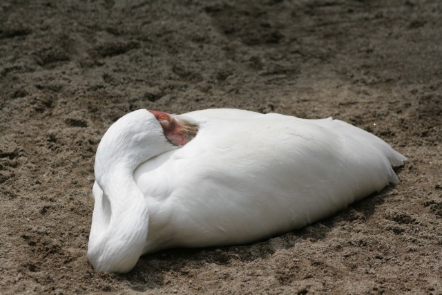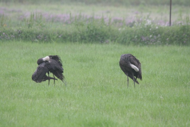 疲れたのか座って、2羽固まって羽づくろい。
