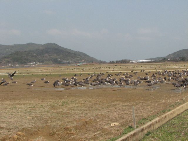 帰りがけ、東干拓の方も見ながら帰る。ナベヅルのなかにマナヅルが1羽だけ混ざっていた。ツレと、はぐれマナヅル(ドラクエ風)ということで盛り上がる。語感が妙にスキ。