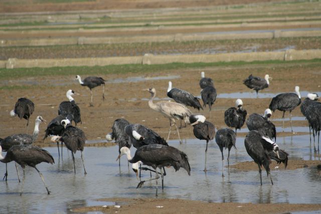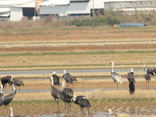 観察センター前左奥付近でマナヅル1羽見つける。クロヅル幼鳥1羽、クロヅル1羽は、あちこち移動しているのを見かける。ナベグロヅルも1羽か2羽見たような・・・