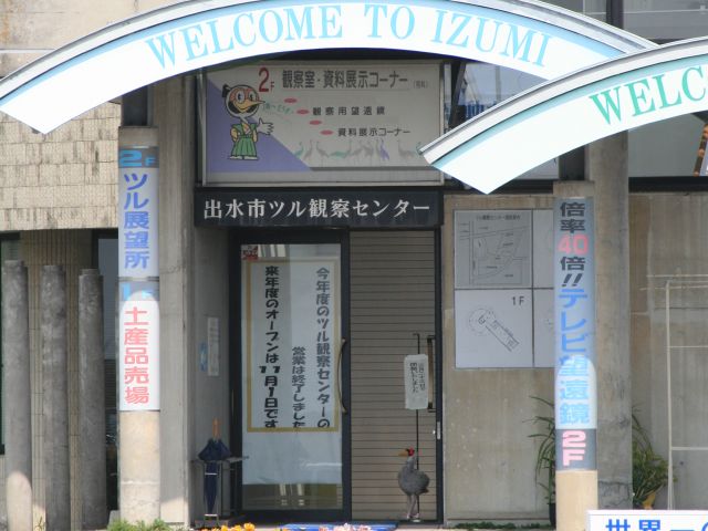観察センターは昨日で終わり。今日は職員の方が後片付け?されてる模様。そんな中、団体バスが訪れていた。バスガイドさんが外でツルを前に説明されていた。これからのツル見物団体バスってかなりの運だめしな気が・・・