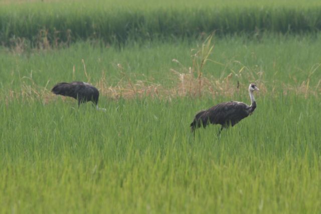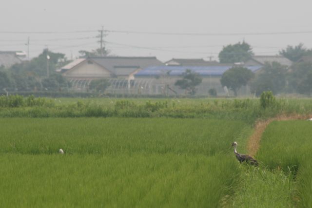 投稿日: 2008年8月21日やさしさ 今朝は9時半頃観察センター付近に到着。晴れているんだけど、靄が濃くかかっています。だんだん風も涼しくなってきた感じ。 今朝は貯水場横の田んぼに2羽。地面を掘り起こして何かをついばんでました。びよっと長めの物が見えたので、雑草の根っこかな? お昼頃ツルを見て帰宅。朝よりも南よりの田んぼにいたのだけれど、どんどん歩いてセンター前につながる道の方へ移動中。先を歩いているツルが「ねえ、ついてきてる?」って振り返っている気がして。