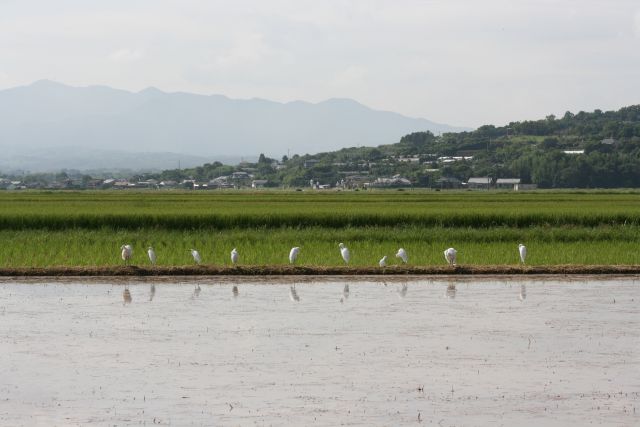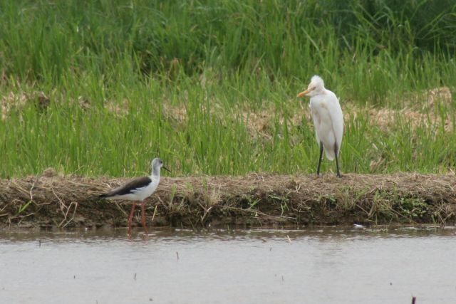 貯木場すぐの田んぼは、水がたまって鳥の楽園。サギ類いろいろと、セイタカシギがいました。ひょんひょんあるいてエレガントな感じ。