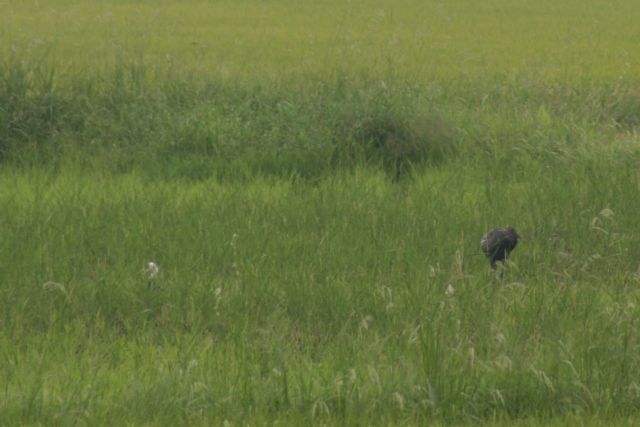 いつもの田んぼに2羽いるのか?1羽が全然顔を上げないのと、近くにアマサギやチュウサギがたくさんいるのですごく見分けづらい。