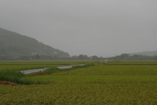 投稿日: 2008年9月15日降り続く強い雨 今朝は10時半頃観察センター付近に到着。ひどい雨で、東干拓の用水路なんかは土手ぎりぎりな水量。車を走らせていると、道の端と水路の端がわからなくなりそうなほど。 いつもの田んぼの横の農道にあがっていました。草むらのなかにクチバシをつっこんでいたけれど、農道との交差点に車を止めたら奥の方に歩いていきました。随分道に近い所にいたみたい。 晴れていたときは乾田だった場所にも水がたまって、いろんな鳥があちこちにいた模様。