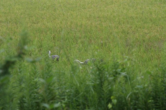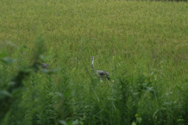 投稿日: 2008年9月24日草越し 晴れてはいるけれど風もなく蒸し暑い! 10時頃観察センター前 28.1℃ 無風ツルねぐら付近 27.5℃ 無風 今日もいつもの道からは全然見えないので川沿いの道からのぞいてみたら、すぐすぐそこにいました。かろうじて草に紛れているけれど(笑)1羽からは警戒されている模様。 12時頃も、川沿いの道から観察。草に紛れているんだけどな。車のエンジン音で警戒してるのかも。 turuhibi リトルモアの写真集公募展にツルの写真集を出してみました。よろしければ見てください~。