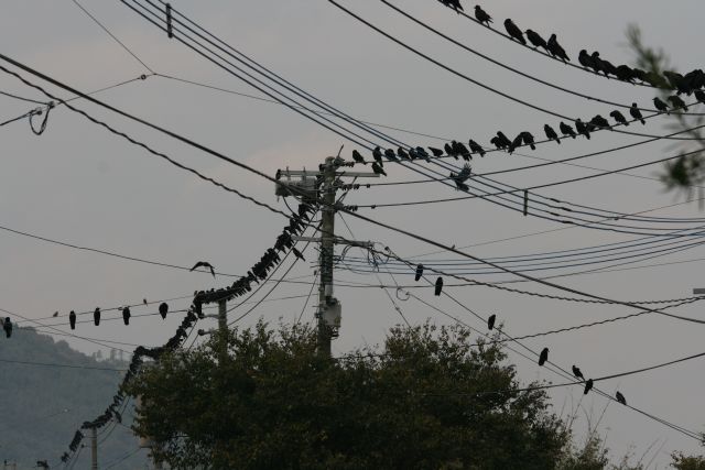朝方、米ノ津橋付近で雨に打たれていた鳥たち。
