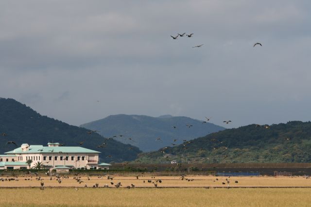 今日は東干拓しか見なかったけれど、結構な数のツルたちがあちこちに。