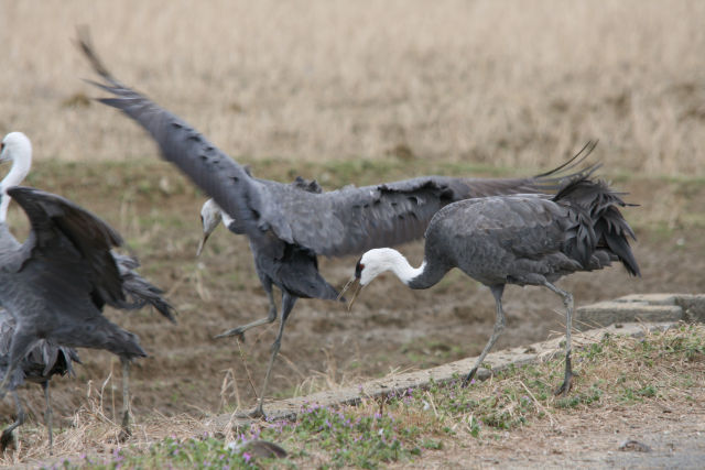 エサがほとんど無くなってソデグロヅルが飛んでいった。