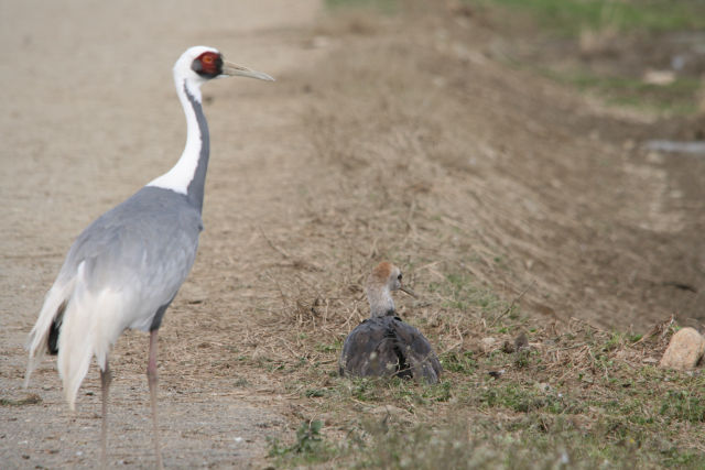 座り込んじゃったナベヅル。