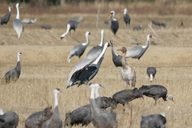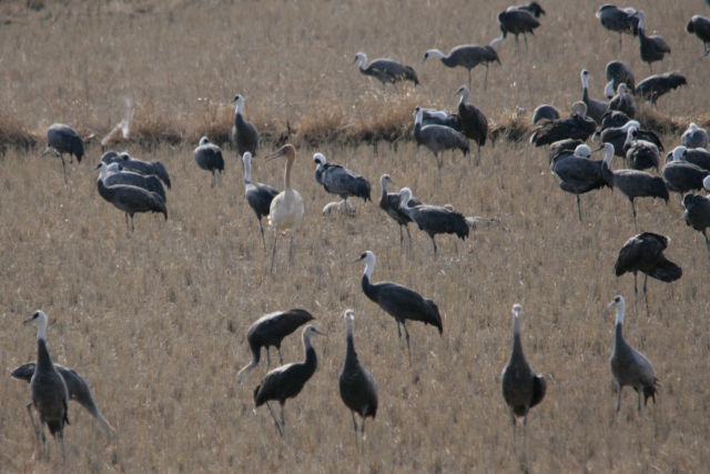 西干拓ではナベヅルの集団に混じって。
