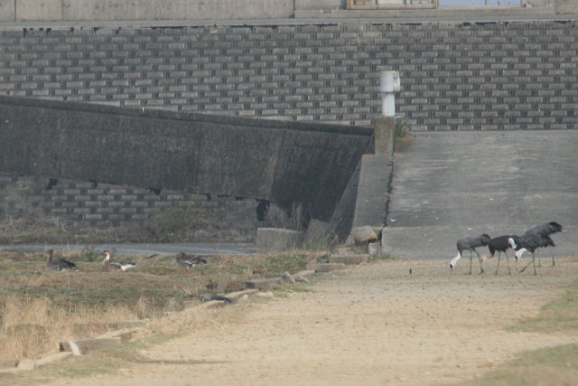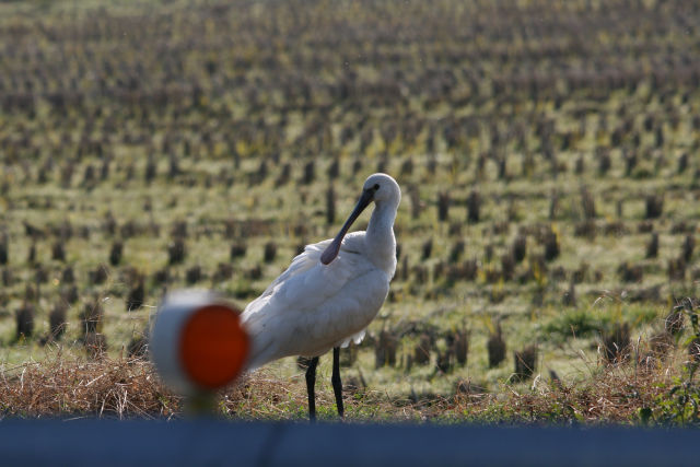 帰りがけにカナダヅルを確認しにいった後、汐見町のあたりでヘラサギ2羽を見る。東干拓にいたヘラサギがこっちまで来てるのかなあ?
