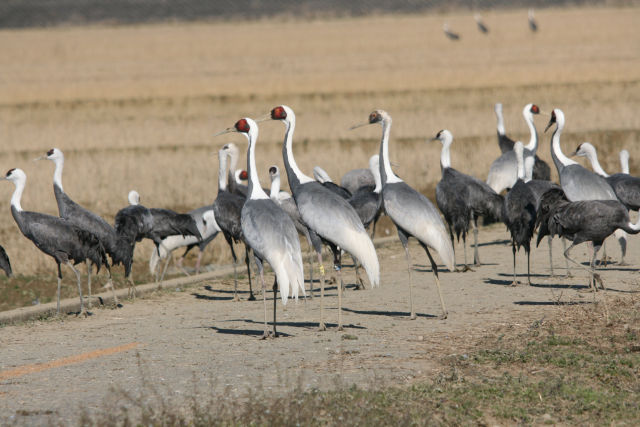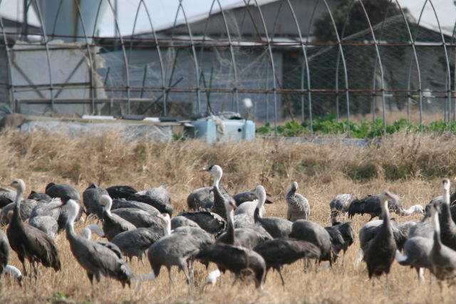 今日はツルたちも割と近くにいましたよ。マナヅル多め。