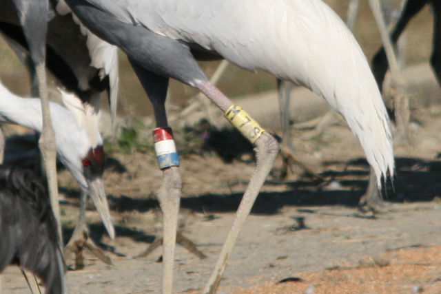 だんだんツルが飛んでいって少なくなった時、標識付きのマナヅルを見つけた。