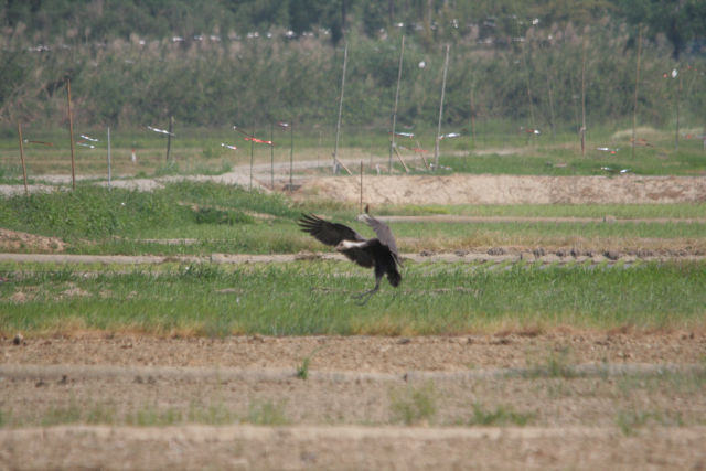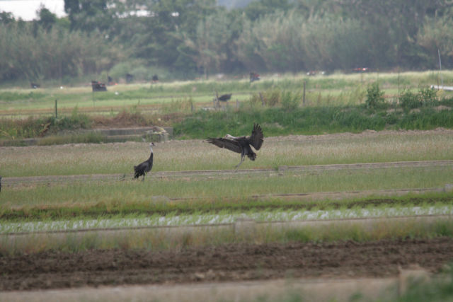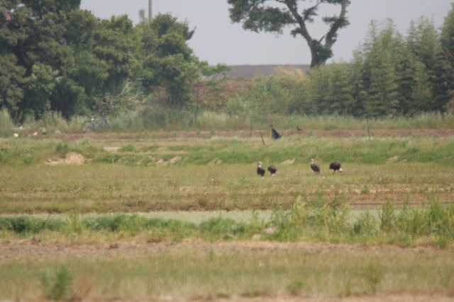 9時50分、幼鳥2羽成鳥1羽が飛び出して、荒崎を1分くらいぐるぐる回ってセンター前農道の左手の田んぼに降りてくる。