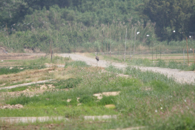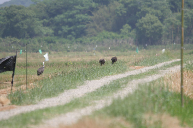 飛ばなかった1羽が、農道をてくてく歩いて3羽の元へ向かっていくようなそぶり。