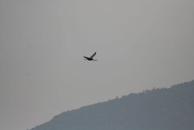 いつもツル見をご一緒するI田さんに、私が着く前9時53分にも1羽が飛んでいた事をお聞きした。今日も飛ぶ気満々?