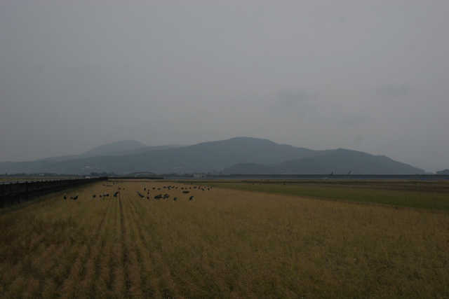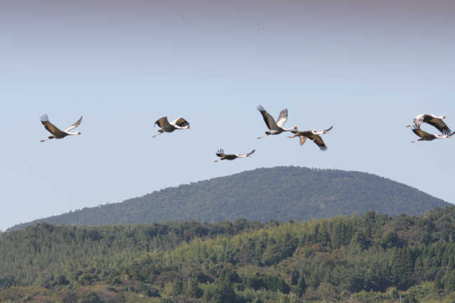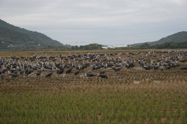端山干拓地に飛来したナベヅル 連合ニュース 11/20付