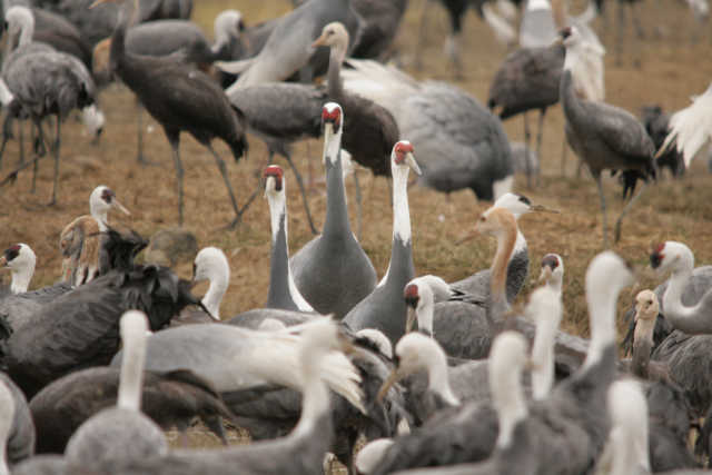 首の白い部分が多いマナヅル。白いだけで印象が全然違う。