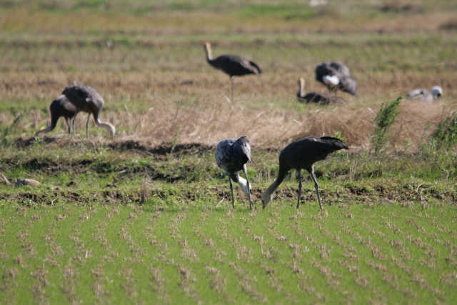 荒崎の田んぼでは、マナヅルたちが大勢寄り添っていた。