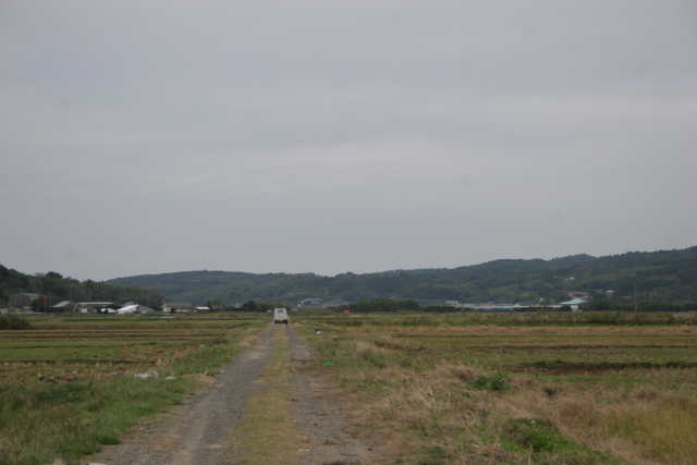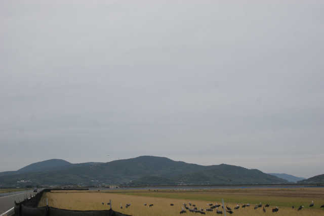 朝、撒かれた餌が道路に近い場所付近にまだ残っていて、それを目当てにツルたちが集まっていました。人が全くいなくなると、ツルも道路近くまで寄ってくる。餌の効果は絶大。