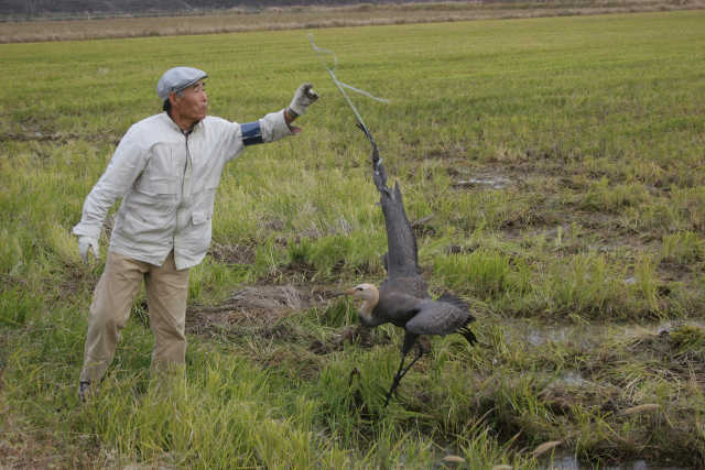 センター前の農道はツルがわんさか。