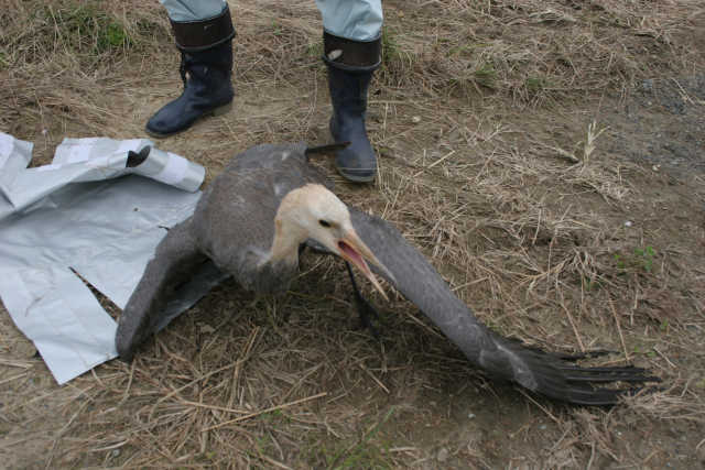 このマナヅル幼鳥は、かなりヒナの羽が残っている。