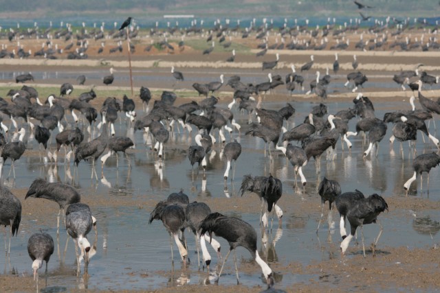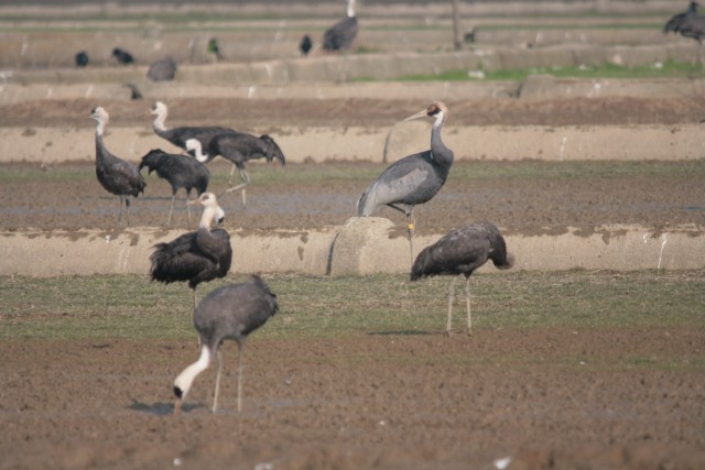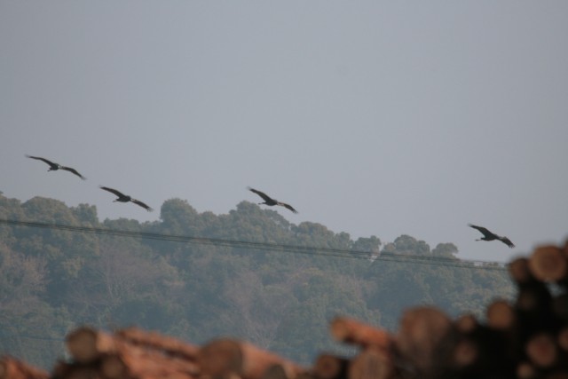 9時53分頃からナベヅル3羽、その後4羽北帰行の偵察?に蕨島方向へ飛んでいったが、すぐに荒崎に戻ってきた。その後も、数羽上空を飛んでみていたけどすぐに諦めて戻ってきた。