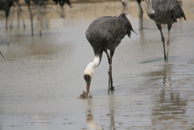 クロヅルは、東干拓でナベクロ家族の1羽を確認。