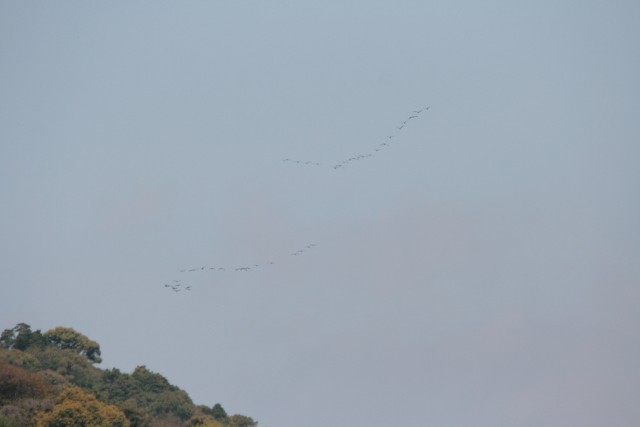 見ていたN先生に、やる気が無い飛び方と言われるツルたち。(笑)