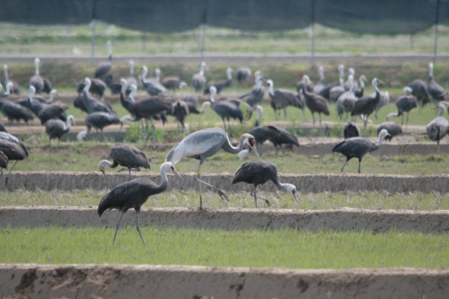 北帰行後、保護区を見てみれば、マナヅルもクロヅル幼鳥もいました。
