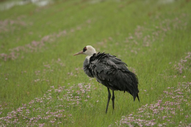 観察センター前農道の一本西の農道横に、カナダヅル1羽。
