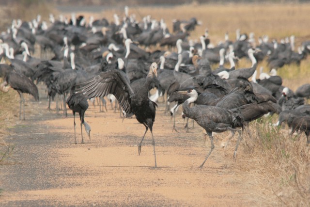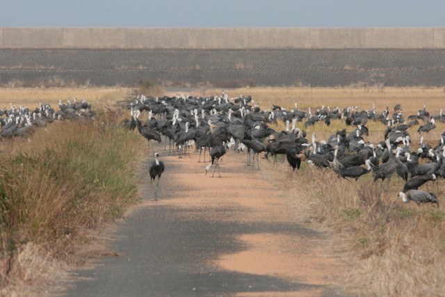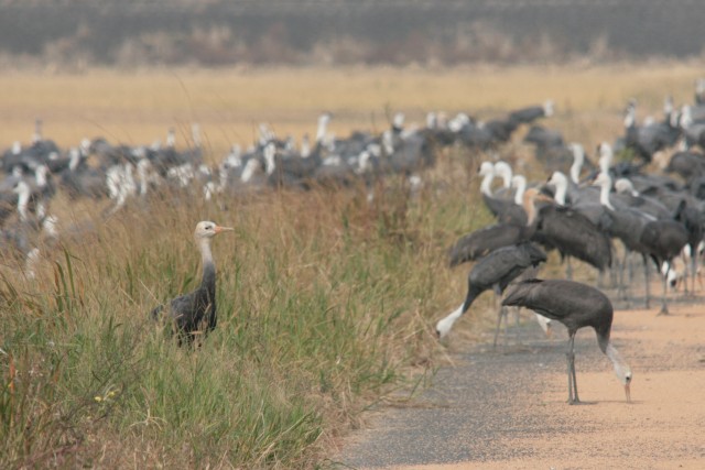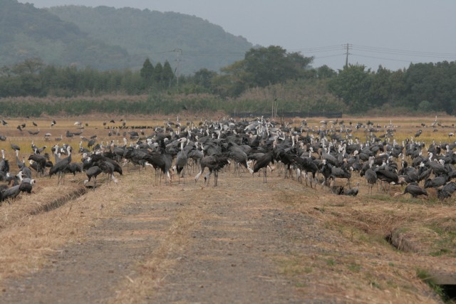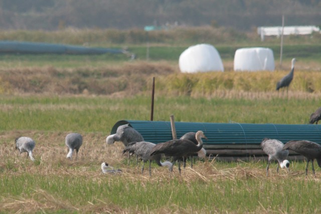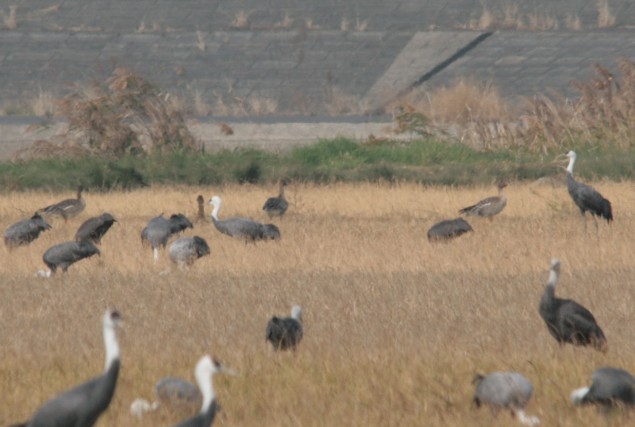 東干拓保護区の餌を撒いてある農道にも、やっとツルたちが上がってくれるようになってきました。