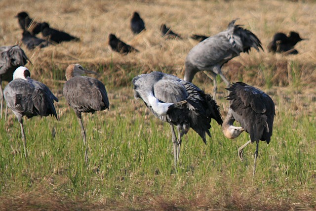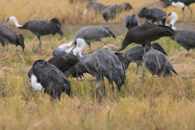 古浜地区にもナベヅルたちが降りていました。だんだん行動範囲が広がってきているみたい。