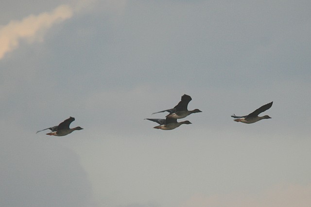 ヒシクイの4羽のうちの1羽が、なんとなくぽちゃっとして頭の形も違うような・・・。顔の角度かな?