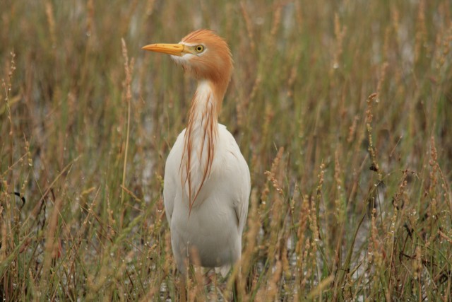 濡れちゃって羽がぺったりアマサギ。