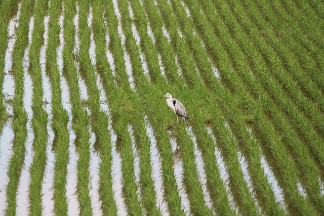 西干拓でせっせと採餌するアオサギ。