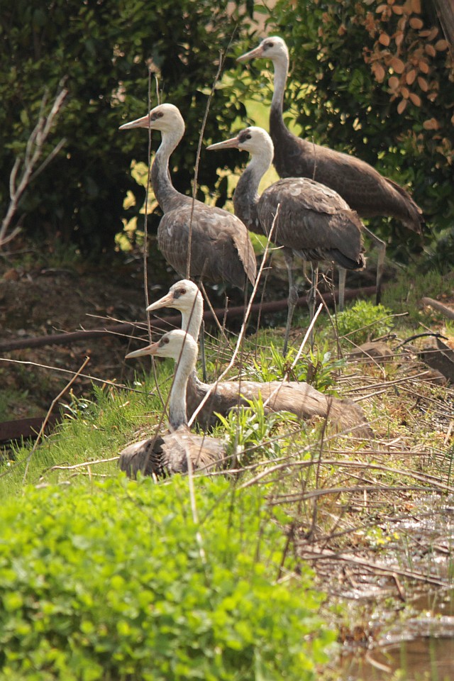 今日も、民家裏にツルたち大集合です。